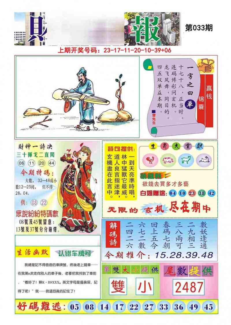 | 032期①码 | 49 | 开:鼠06 |