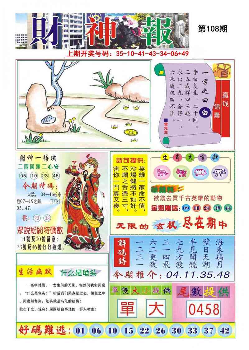 108期⑨码 37.11.22.38.24.19.05.03.33 开:狗45