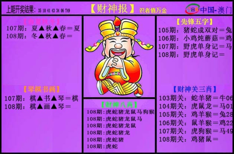 107期八肖 虎鼠羊兔鸡猴蛇 开:马49