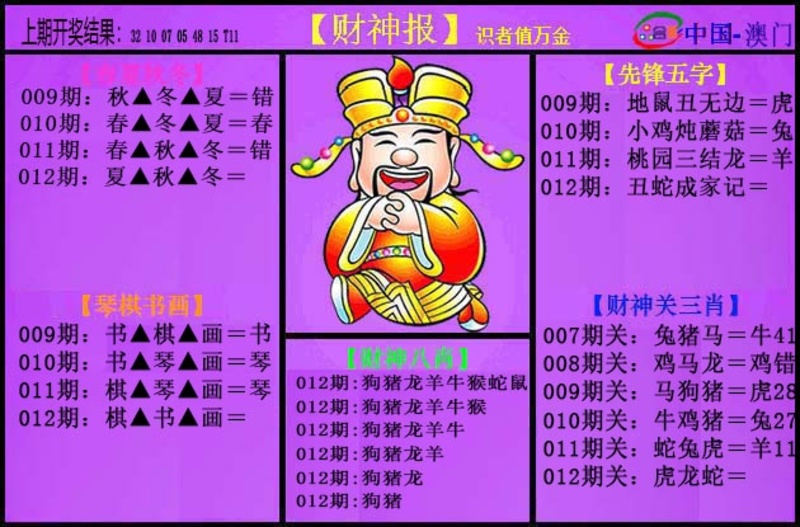 | 012期⑨码 | 39.32.38.33.49.28.18.48.05 | 开??准 |