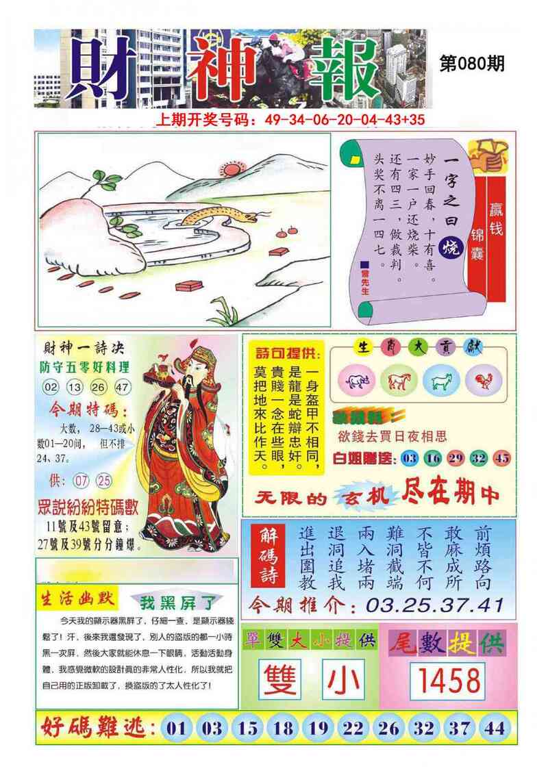 | 080期③码 | 41.26.18 | 开:龙03 |