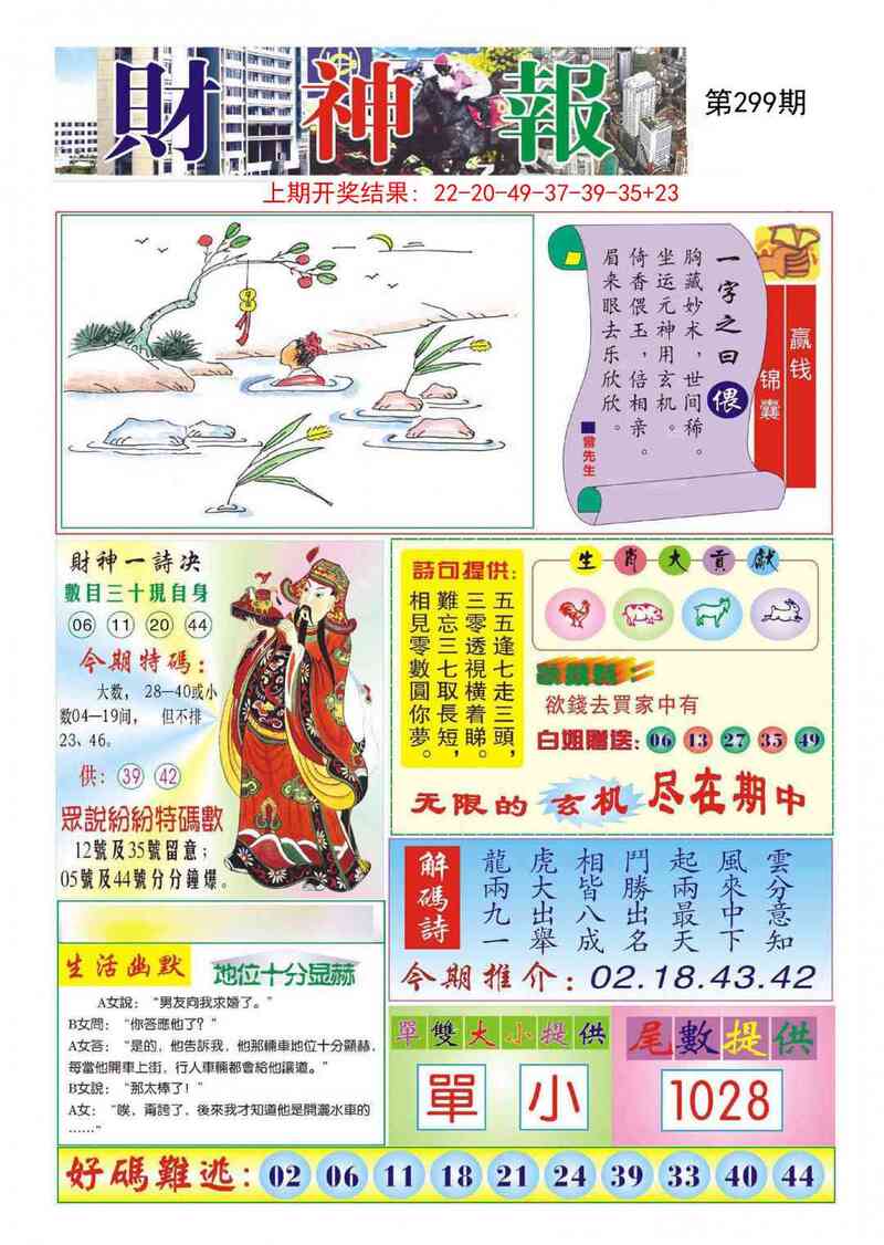 | 299期⑨码 | 19.10.27.26.17.23.40.01.30 | 开??准 |