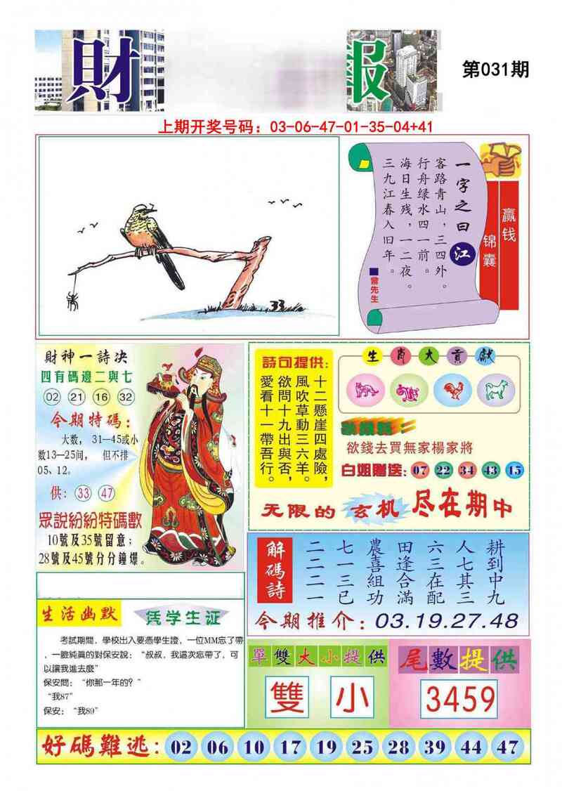 | 031期①码 | 30 | 开??准 |