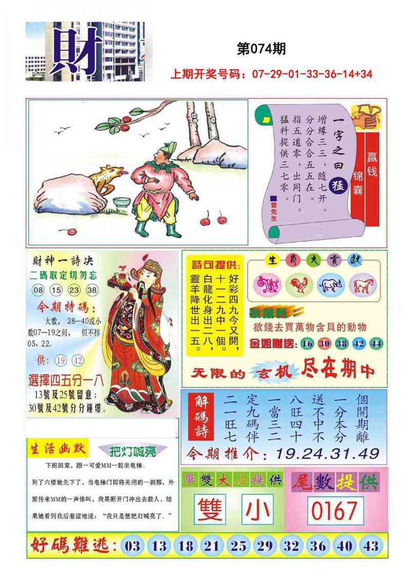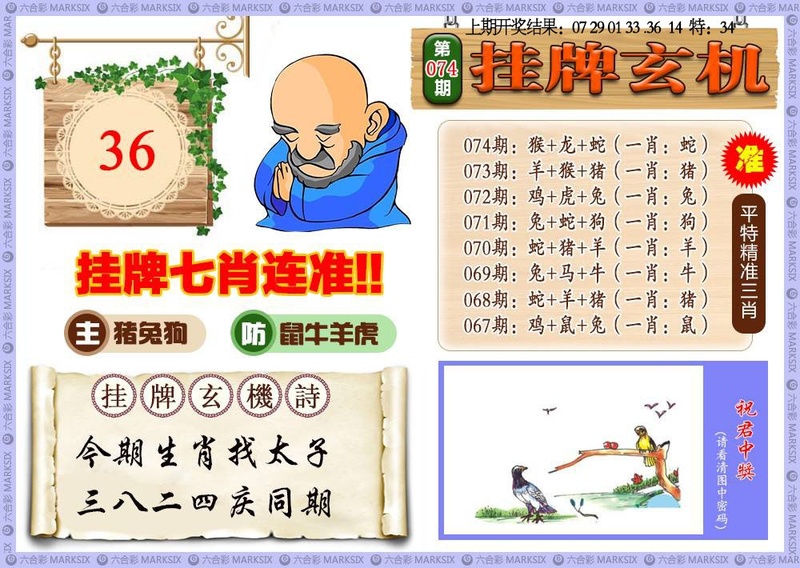 | 074期①码 | 36 | 开:鸡10 |