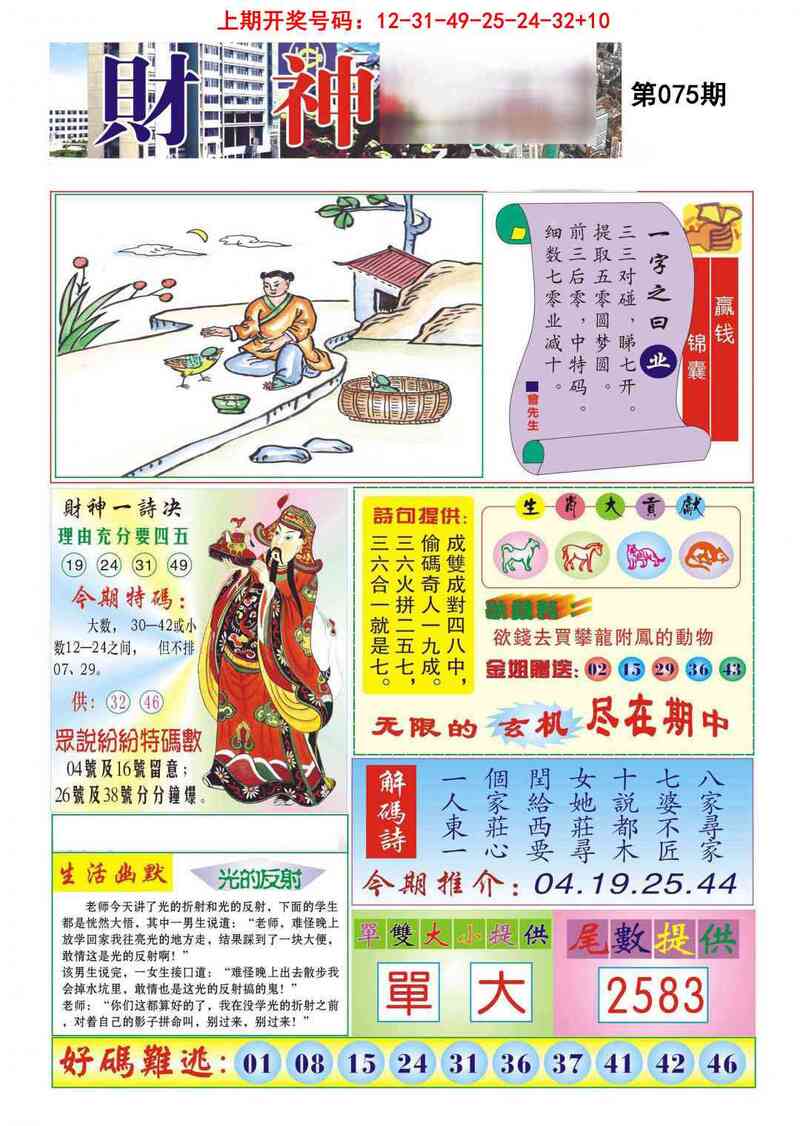 | 075期①码 | 45 | 开??准 |