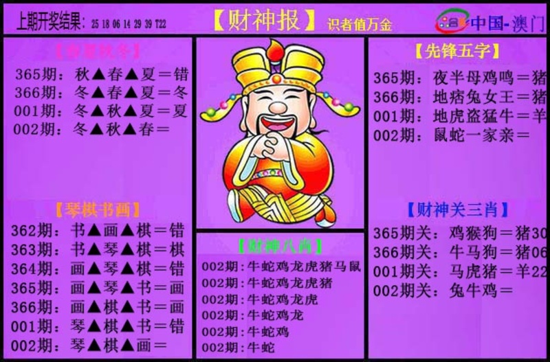 | 天书四肖 | 赌神五字 | 大小单双 |