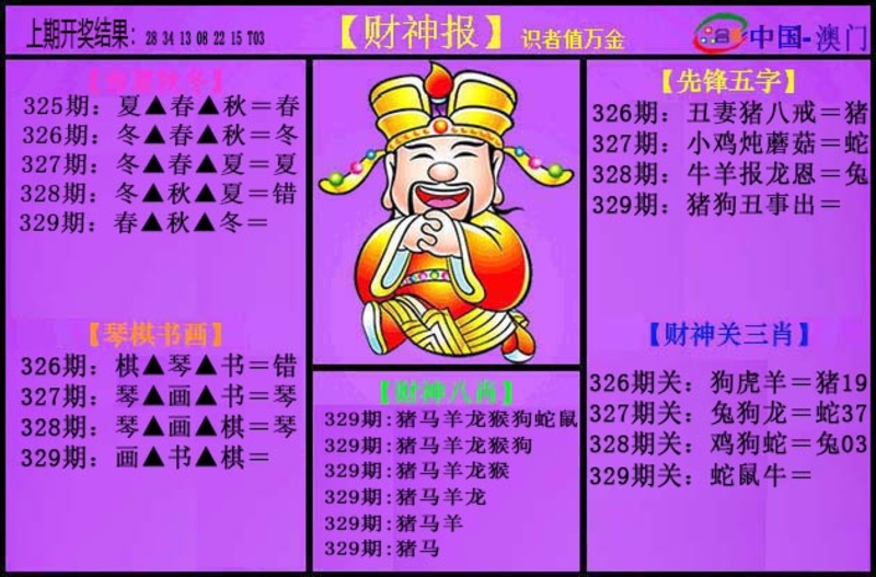 | 325期四肖 | 鼠鸡猪羊 | 开:虎04 |