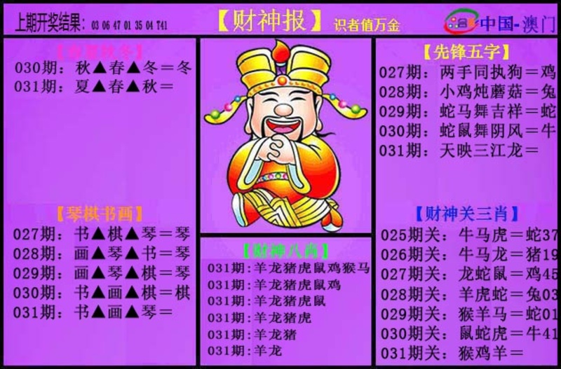 | 031期①码 | 30 | 开??准 |