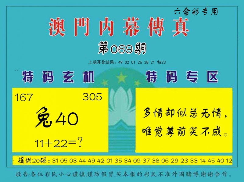 | 065期⑦码 | 12.16.45.13.07.02.20 | 开:虎05 |